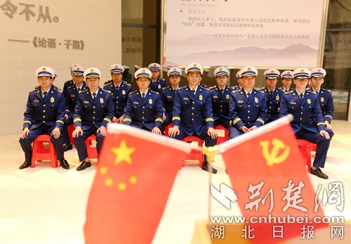 圖為消防指戰(zhàn)員全體學(xué)習(xí)黨章現(xiàn)場。通訊員 朱燕林?jǐn)z
