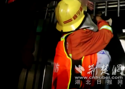 圖為消防員救出被困人員現(xiàn)場。通訊員 葛棟 攝