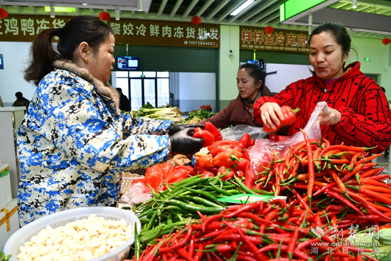 荊楚網(wǎng)(湖北日報網(wǎng))訊(通訊員劉建平 胡永志 付婧燁)“承東啟西匯南北,商貿(mào)富縣促發(fā)展”……1月3日,通城縣鄂南農(nóng)貿(mào)大市場大門口上的大紅對聯(lián)在冬日的暖陽下格外亮眼,斥資1.2億元打造的智慧農(nóng)貿(mào)大市場正式開門迎客。