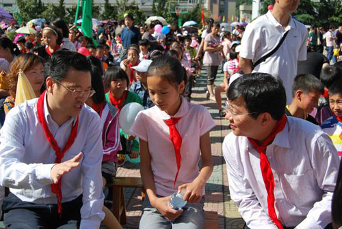 開幕式結(jié)束后,佩戴著少先隊員敬獻的紅領(lǐng)巾,周森鋒來到同學(xué)們中間,和大家一起唱誦國學(xué)經(jīng)典《鋤禾》、《弟子規(guī)》,觀看文藝節(jié)目,并親切地和身邊的小學(xué)生交談,詢問他們的家庭和學(xué)習(xí)情況,并希望他們積極參加社會實踐,鍛煉強健身體,增長才干。